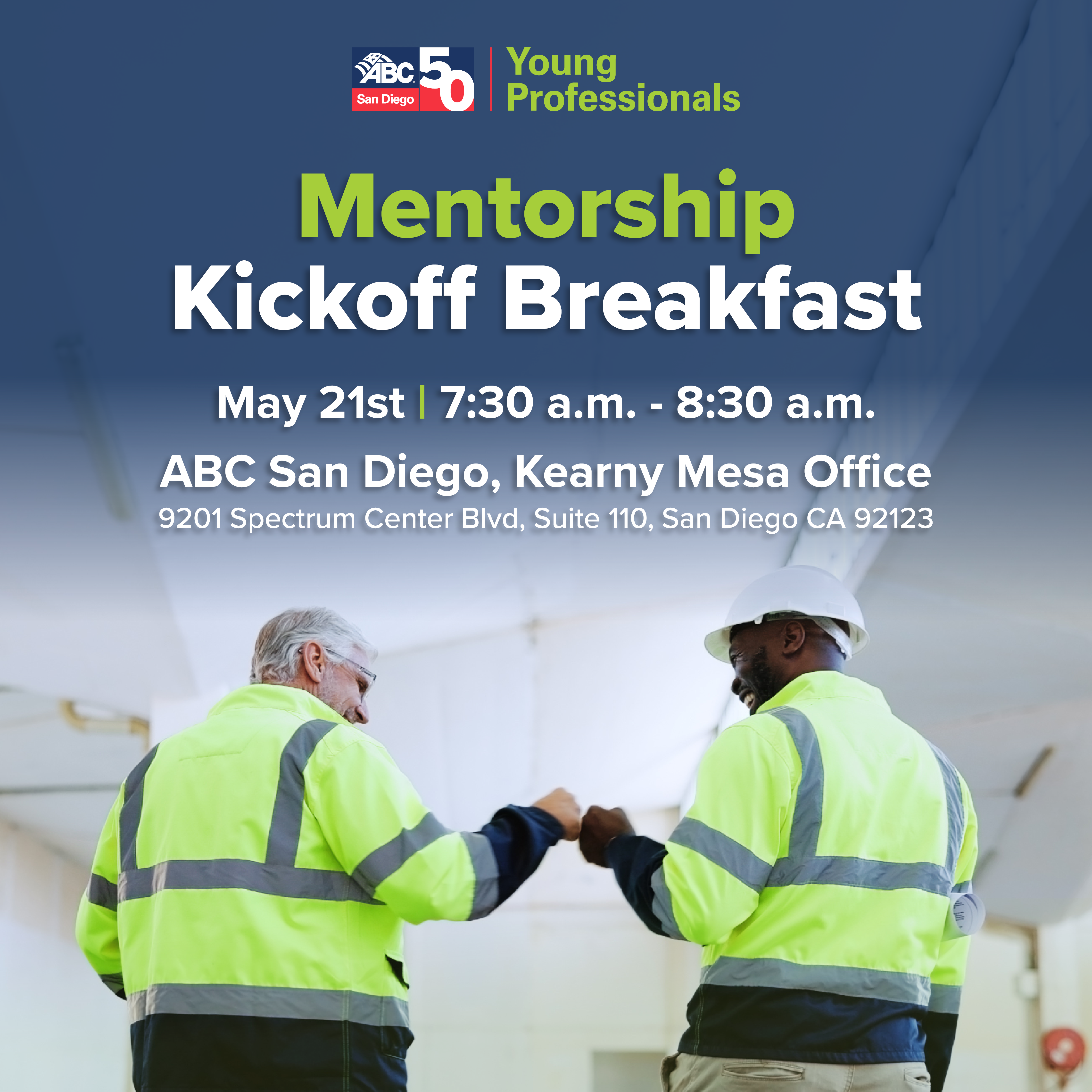 The ABC San Diego Young Professionals Mentorship program is designed for construction professionals in all phases of their careers at every level as well as diversified positions. The 2026 program runs from May to November. We hope that you could be a part of our program to help build your future!